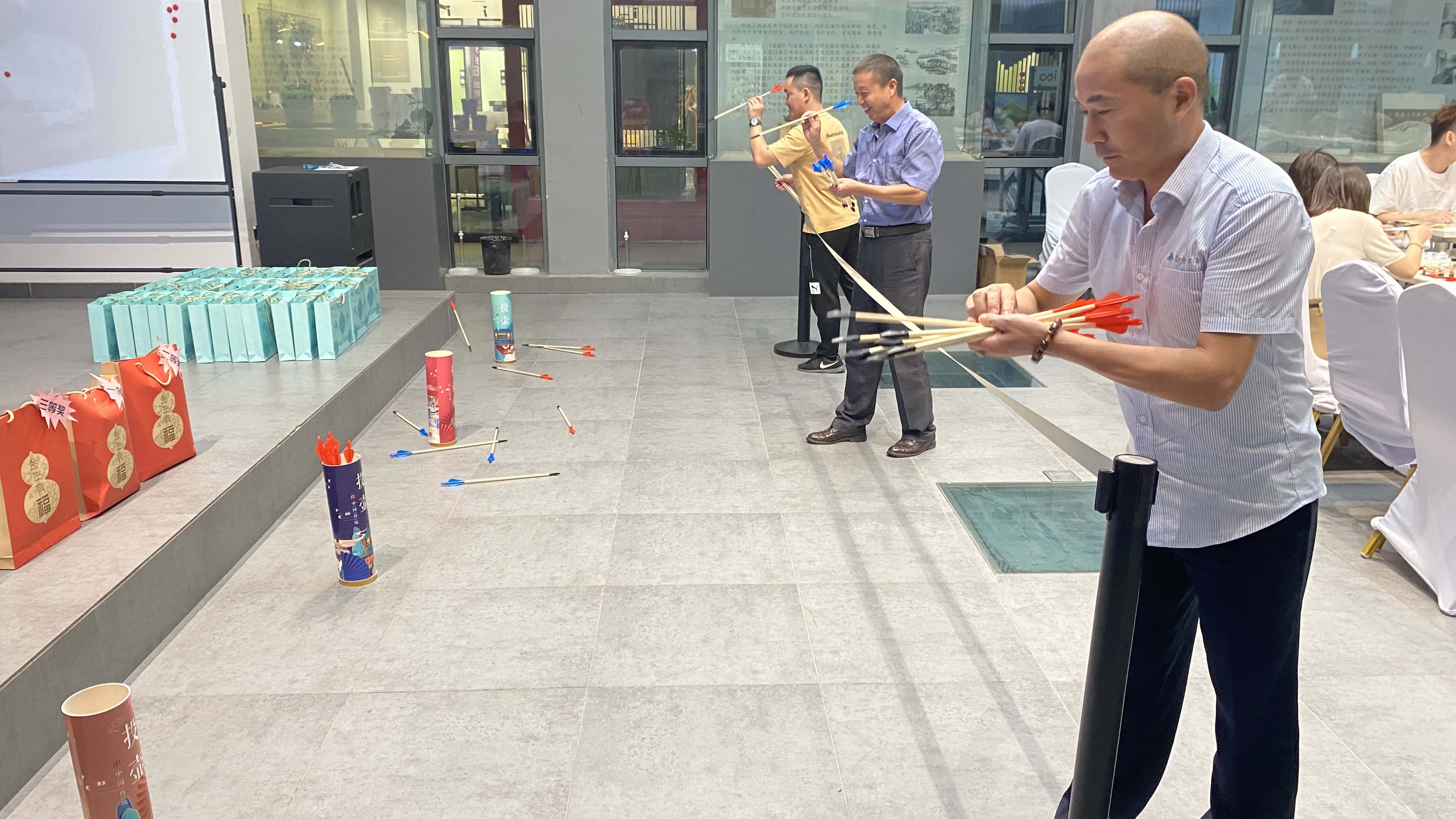 接下来是投壶游戏,投壶是把箭往壶里投,投中多的为胜。其实投壶看似简单,但是想要投中确实不容易,稍有不慎就会投偏。投壶的要领在于静下心看准位置再投出,非常考验参与者的心态,大家一边投掷着箭羽,一边争相比拼,场面热闹非凡。