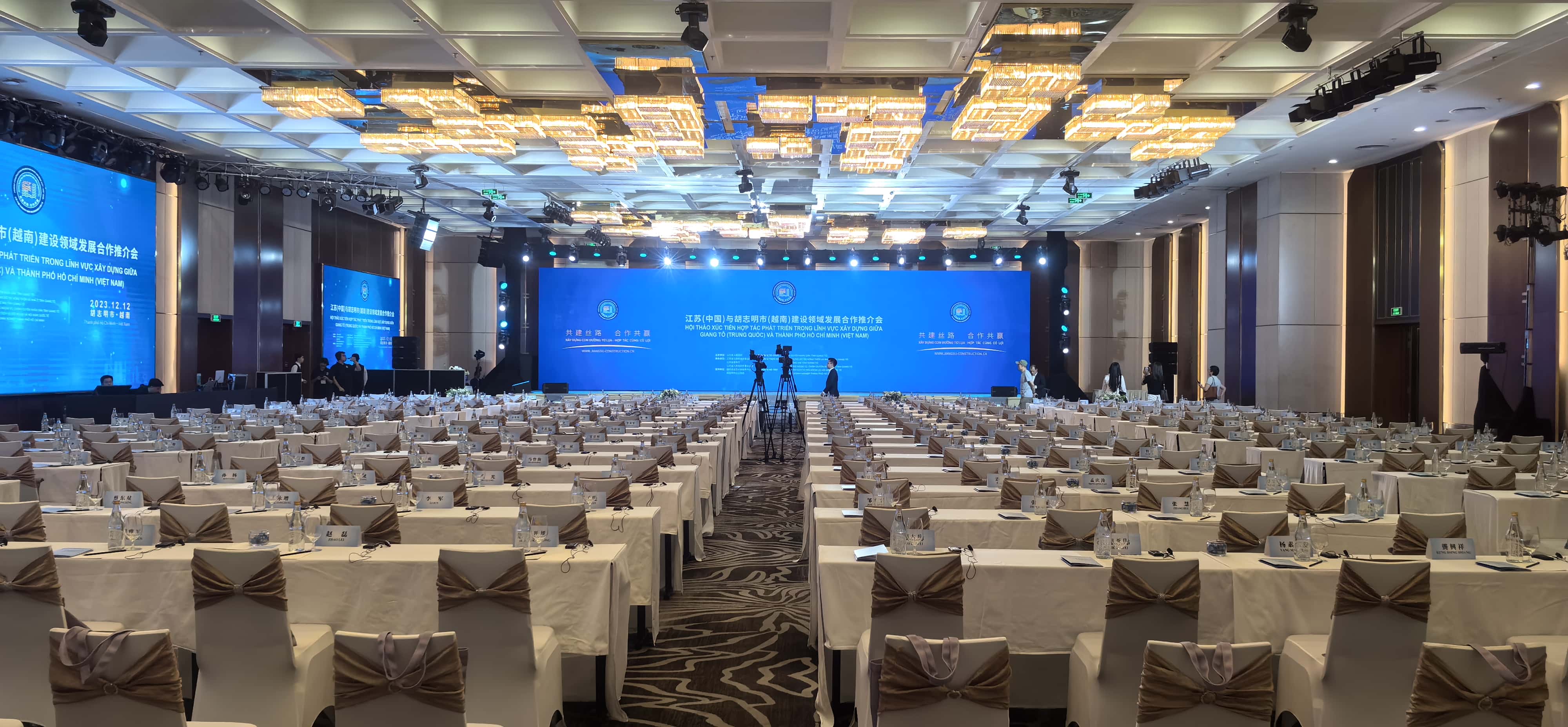 12月12日,江苏(中国)与胡志明市(越南)建设领域发展合作推介会在越南胡志明市成功举办。此次推介会旨在加强两地在建筑、基础设施、工程机械、房地产投资等领域的合作,吸引了胡志明市和江苏省约200家企业参加。胡志明市人民委员会副主席裴春强先生和中国江苏省政府副秘书长崔巍先生及胡志明市相关部门负责人出席会议并致辞。我司董事长谢洪正受邀参加了此次活动。