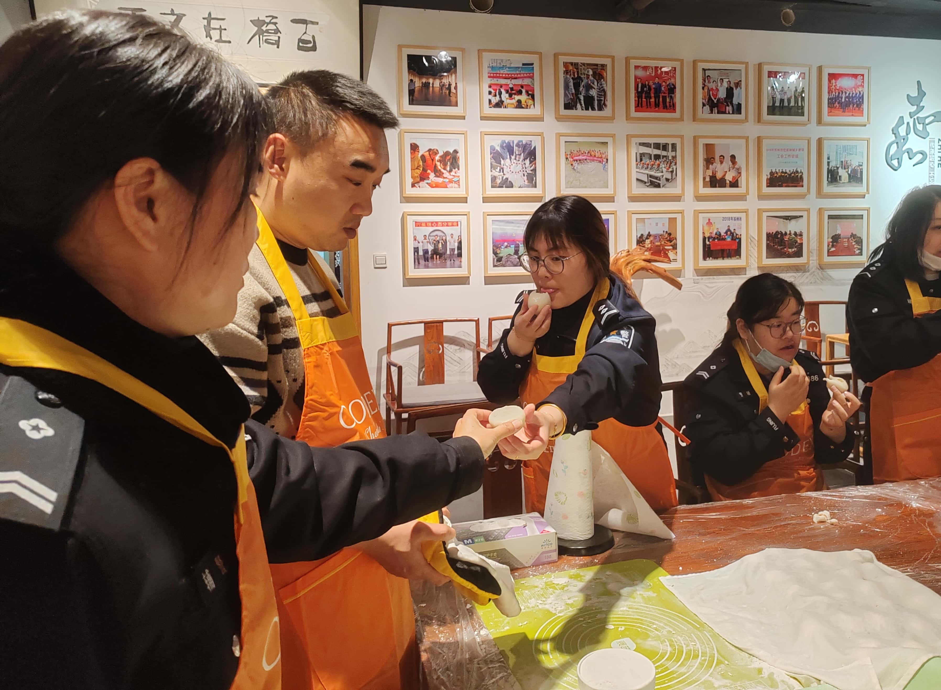 在大家的共同协作下,一个个寄托节日美好愿望的汤圆逐渐成形。汤圆包好后,大家烧水煮汤圆,随后一碗碗热气腾腾的汤圆送到民警与员工们的手里。