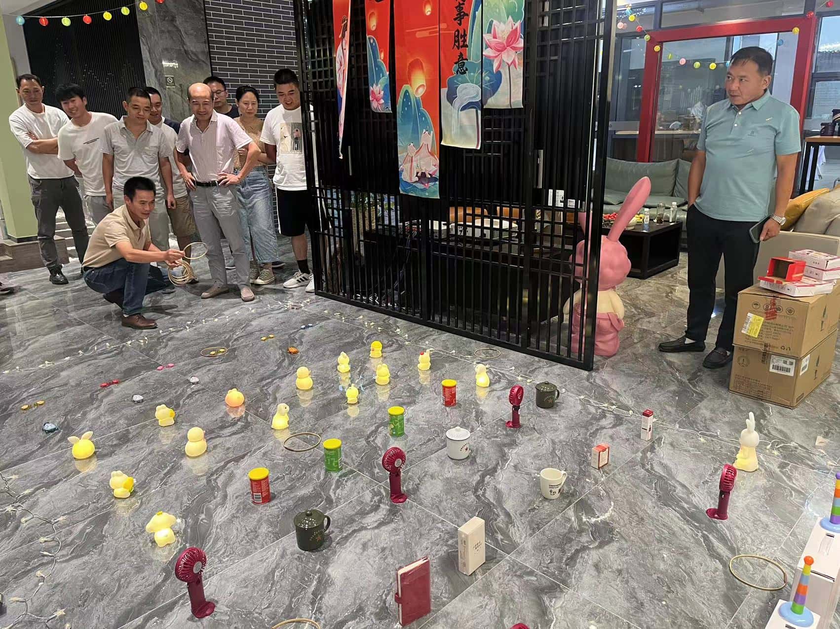下午,一场场趣味横生的传统游戏盛宴拉开了帷幕。套圈活动现场,竹圈在空中划过优美的弧线,仿佛是员工们对美好奖品的热切期许在飞翔。每一次精准的投掷,都伴随着阵阵欢笑与喝彩,那笑声如同跳跃的音符,在空气中奏响快乐的旋律。