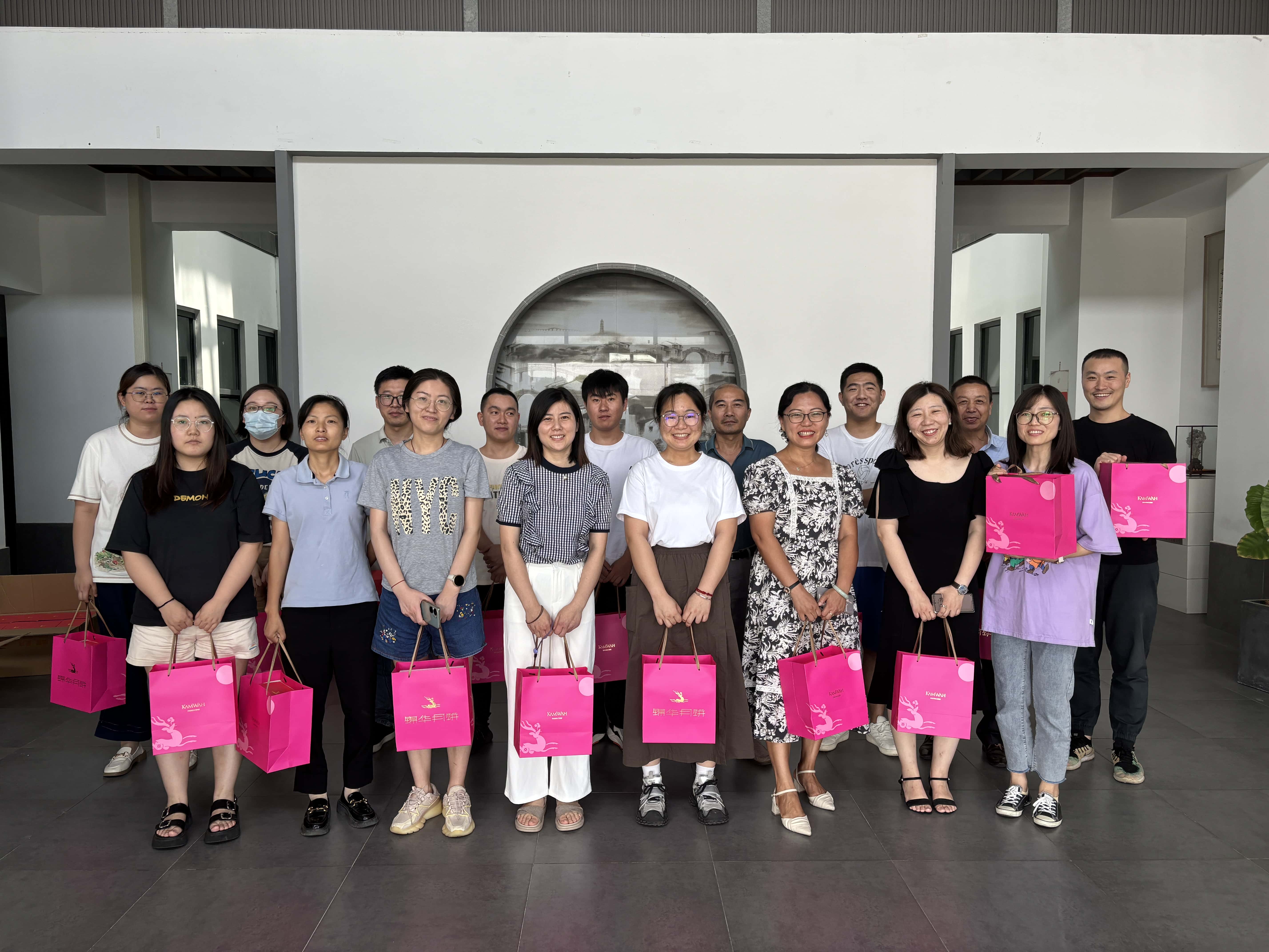 中秋前夕,公司还为每一位辛勤工作的工人和员工送上了月饼礼盒。那精致的礼盒里,月饼宛如一轮轮小小的明月,散发着甜美的香气。这不仅仅是一份简单的礼物,更是公司对大家的深切关怀与节日祝福的凝聚。
