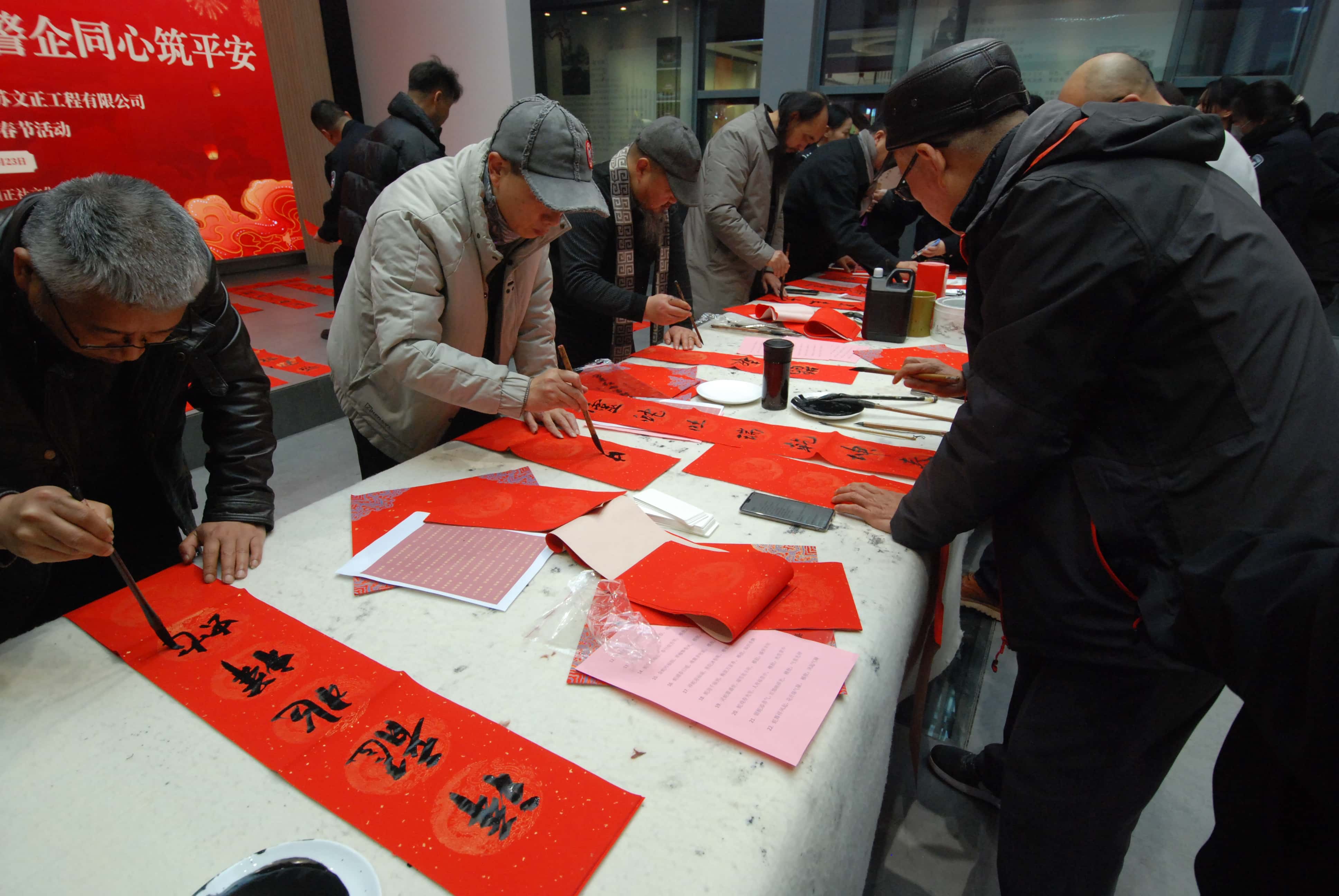 活动现场,墨香四溢,我司特别邀请了苏州正社文化研究院的一众老书法家们为奋斗在一线的警务人员们写春联,送福字,书法老师如行云流水般挥毫泼墨,笔锋游走间,一幅幅饱含新春祝福的春联、一个个圆润饱满的福字跃然纸上。民警们与我司员工围聚四周,有的凝神观摩,有的亲自上阵,一笔一划间,寄托着对新一年的美好祈愿。