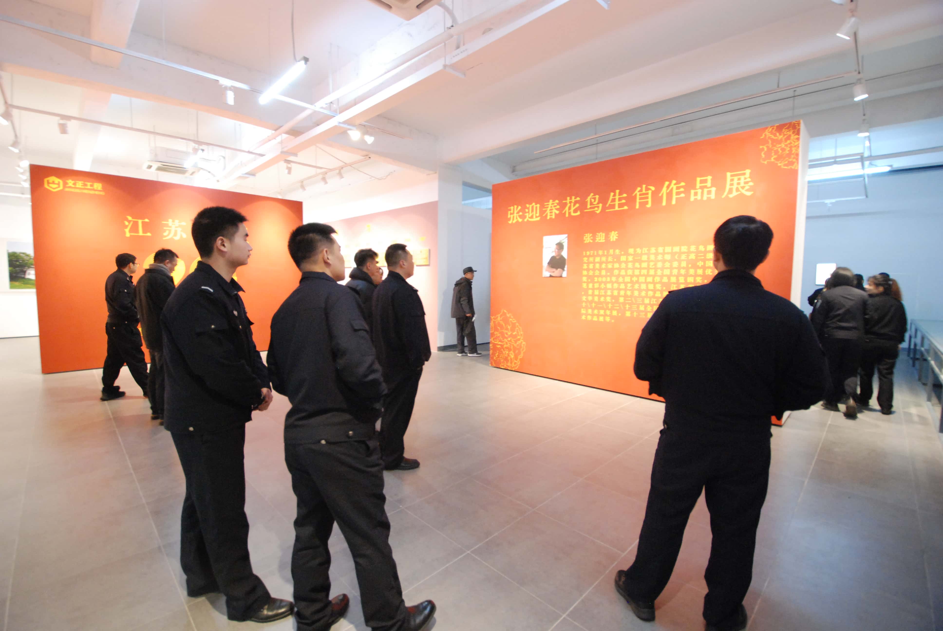 活动结束后,众人一同前往 3 楼参观张迎春花鸟生肖画作品展。步入展厅,一幅幅精美作品映入眼帘,灵动的飞鸟羽毛、娇艳欲滴的花朵色泽,还有生肖动物们俏皮又鲜活的神态,栩栩如生,带领众人进入花鸟的浪漫世界……民警和员工们沉浸其中,不时交流着对作品的感悟与理解,在艺术的氛围里进一步增进了彼此间的情感交流。